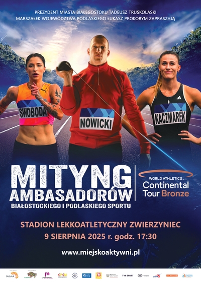 W Białymstoku po raz drugi odbędzie się Mityng Ambasadorów Białostockiego i Podlaskiego Sportu. To kolejna w tym roku, chwilę po Mityngu Gwiazd na Rynku Kościuszki, okazja aby podziwiać gwiazdy lekkiej atletyki. W sobotę (9 sierpnia) podczas 2,5 godzinnego spotkania na Stadionie Lekkoatletycznym Białostockiego Ośrodka Sportu i Rekreacji zostanie rozegranych piętnaście konkurencji.